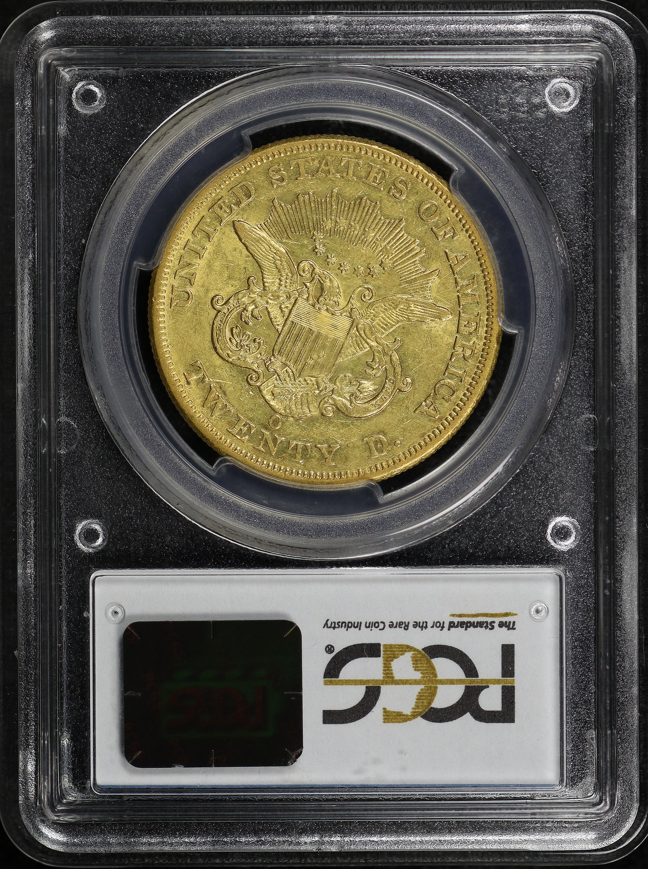 Reverse:Shielded eagle with wings outstretched holding arrows and olive branches. The words UNITED STATES OF AMERICA * TWENTY D. appear around the periphery. Mint mark, if any, appears below the eagle's tail, above the N in TWENTY.