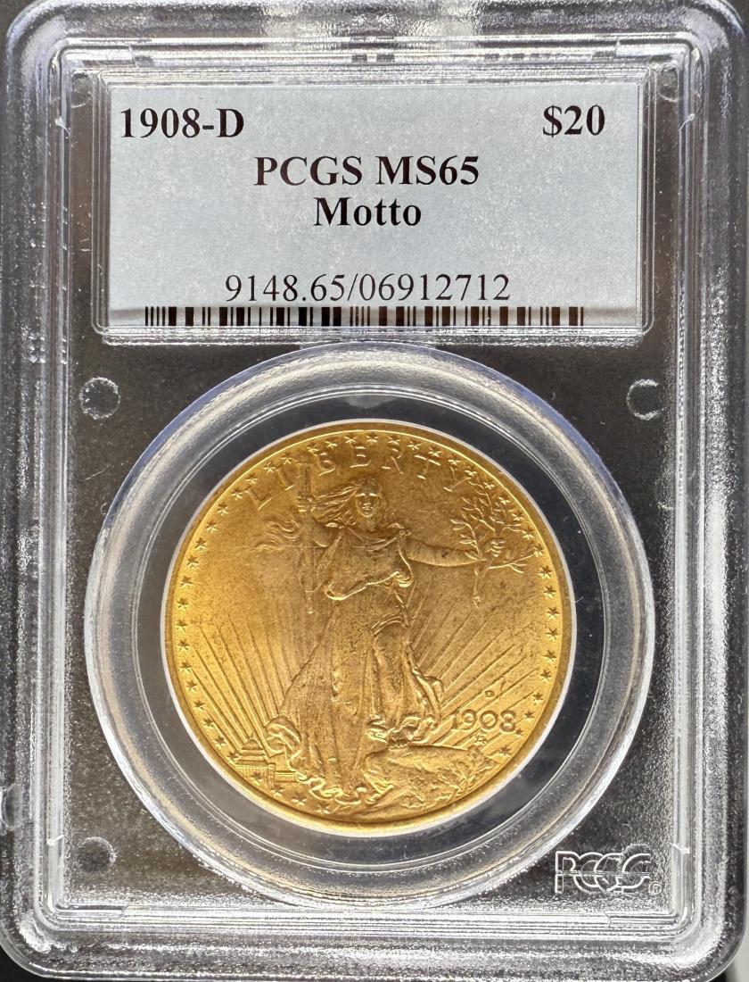 1908-D Motto $20 MS65 PCGS Saint Gaudens Gold Double Eagle