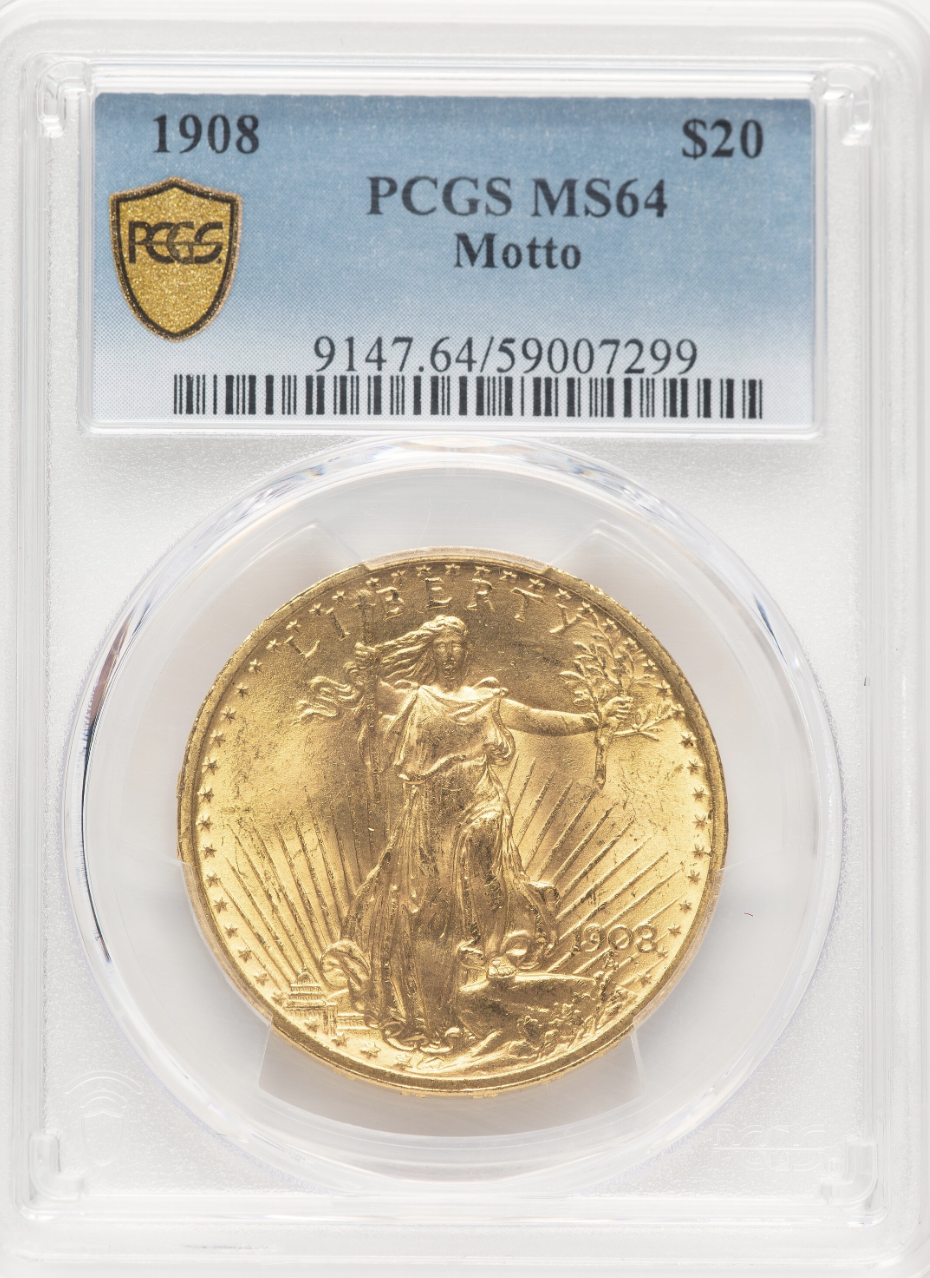 1908 Motto $20 MS64 PCGS Saint Gaudens Gold Double Eagle