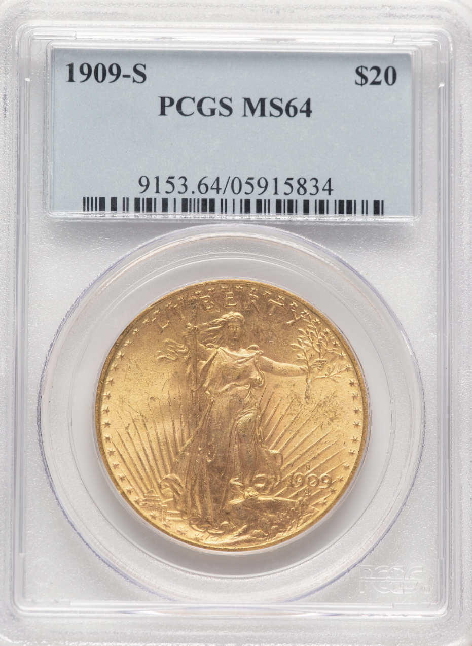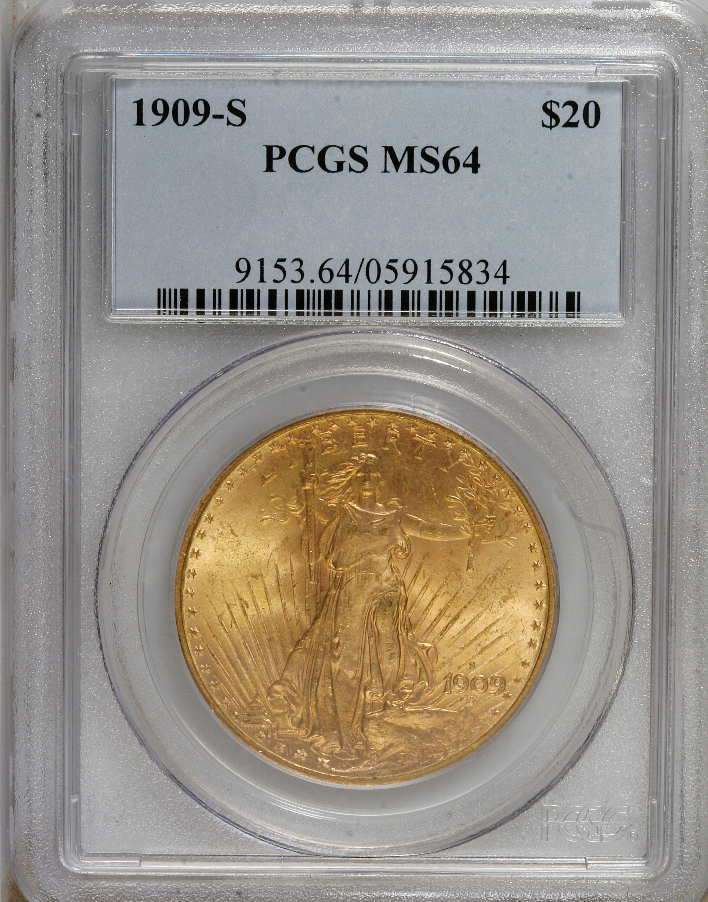 1909-S $20 MS64 PCGS Saint Gaudens Double Eagle