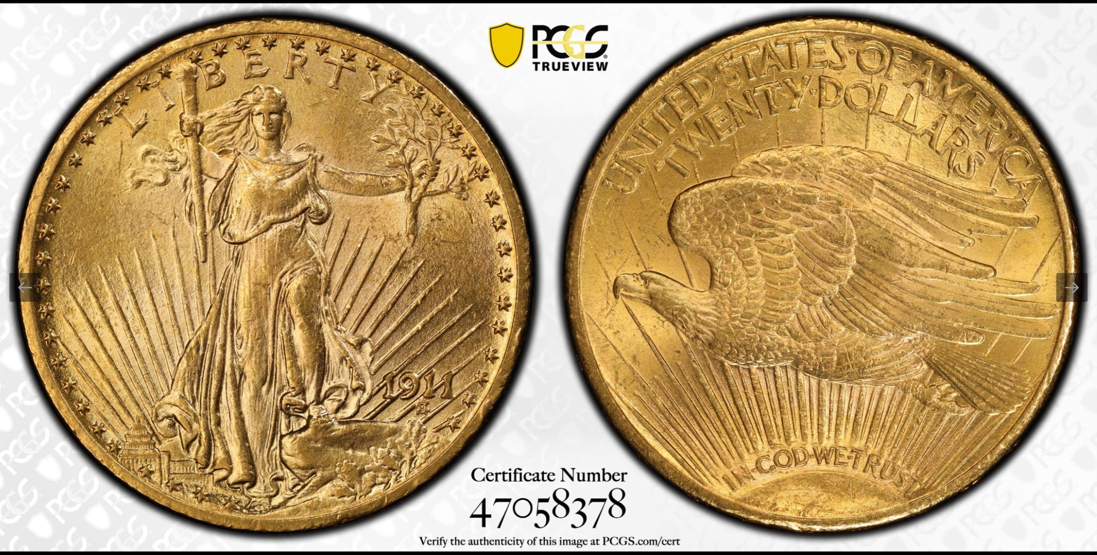 1911 $20 MS64 PCGS Saint Gaudens Double Eagle.