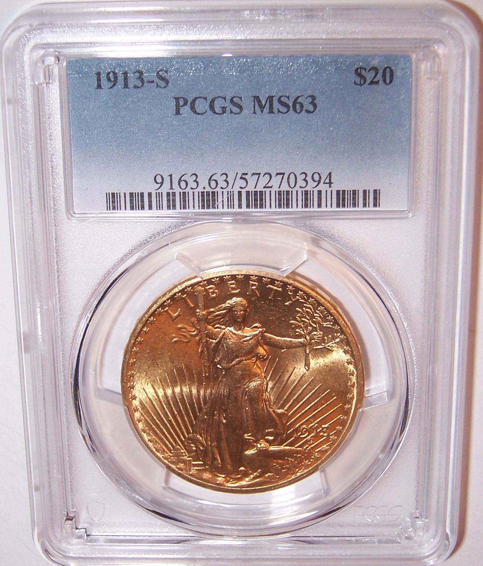 1913-S $20 MS63 PCGS Saint Gaudens Gold Double Eagle