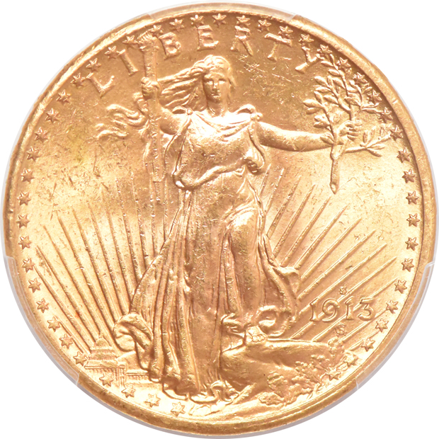 While one of the lowest-mintage regular-issue Saints, the 1913-S $20 is not necessarily among the rarest on the marketplace. In fact, it is probably more fairly described only as a better date, rather than as a rarity -- at least when discussing all 1913-S Saint-Gaudens $20s as a group. Certainly, better-grade examples are scarce, and this is evidenced by the very few Gems known to exist -- all told, pieces grading MS65 or better number fewer than 50 pieces and are the darlings of registry set collectors.