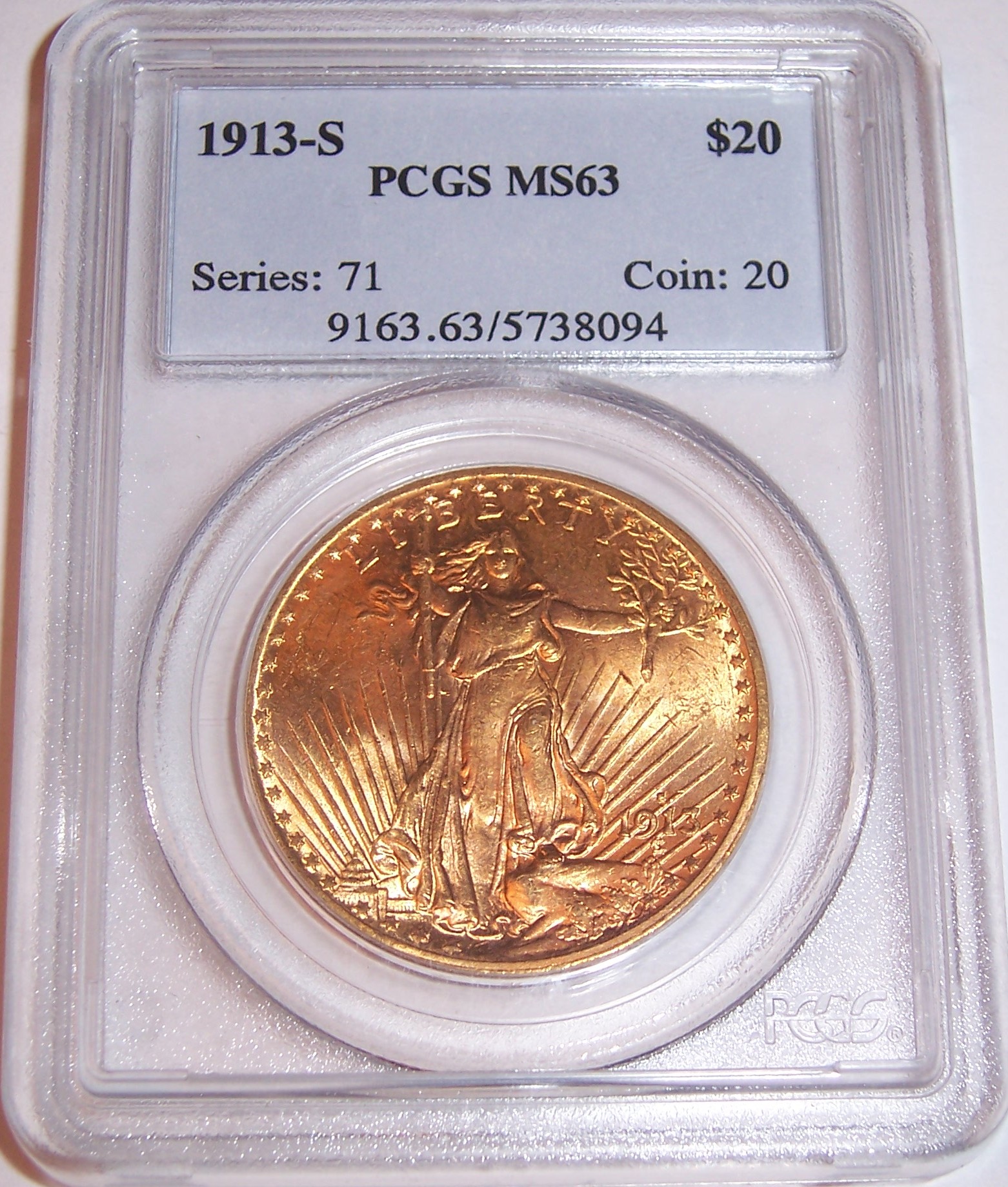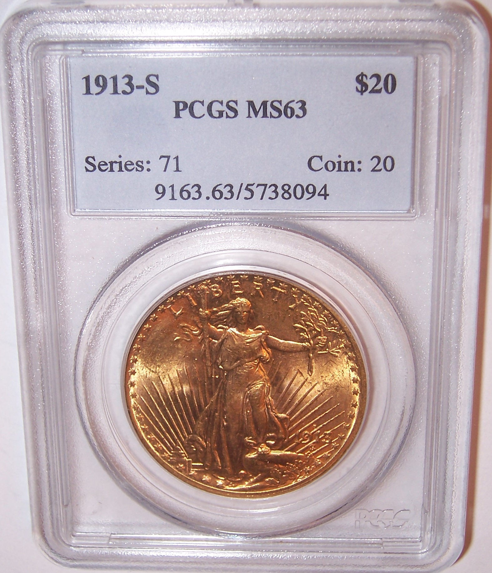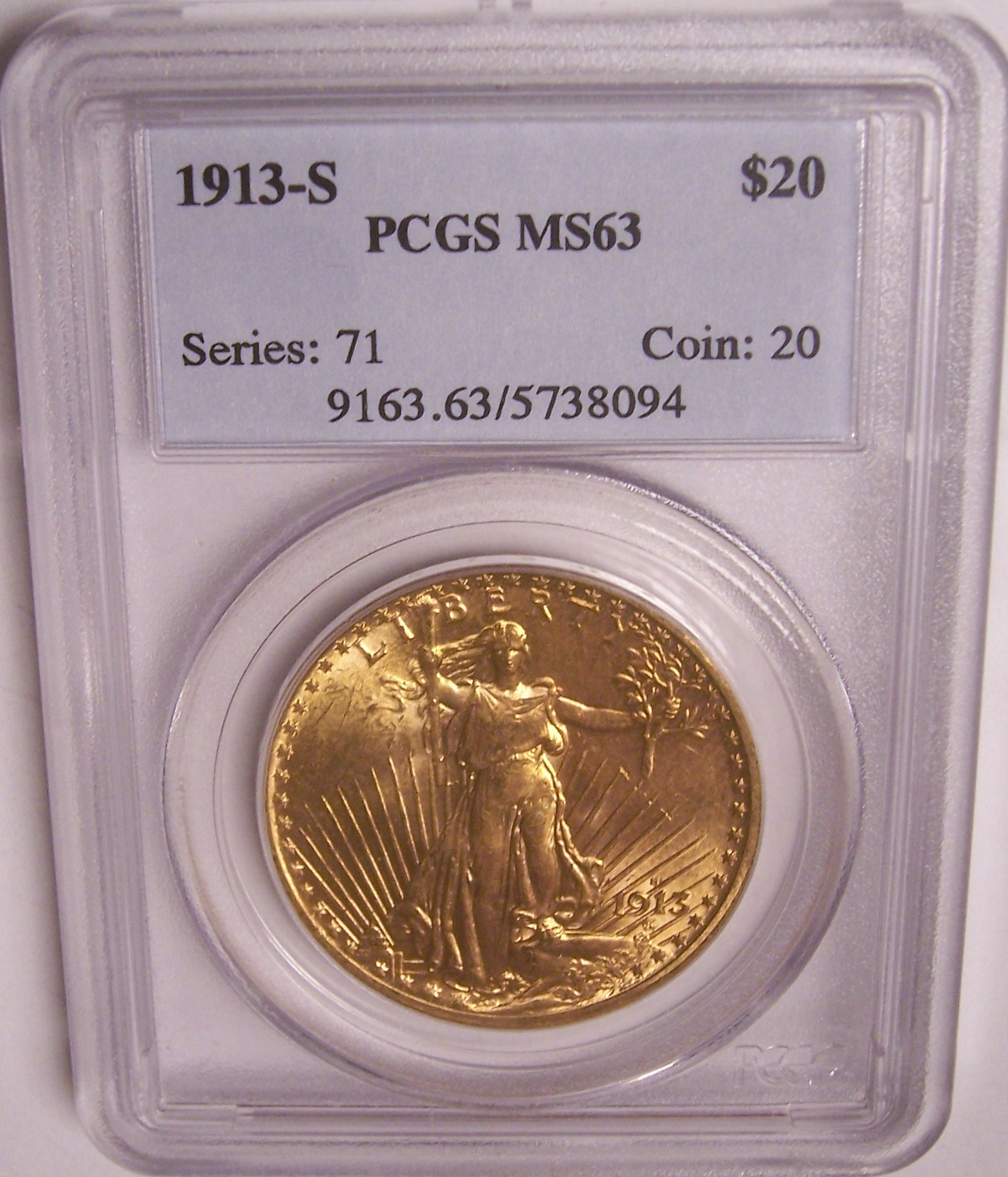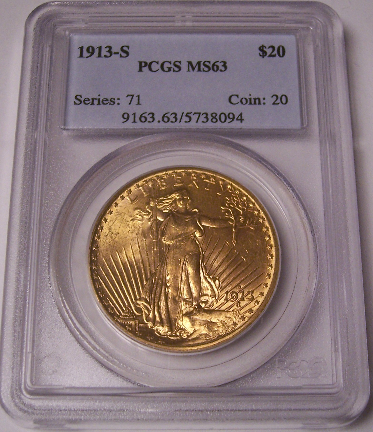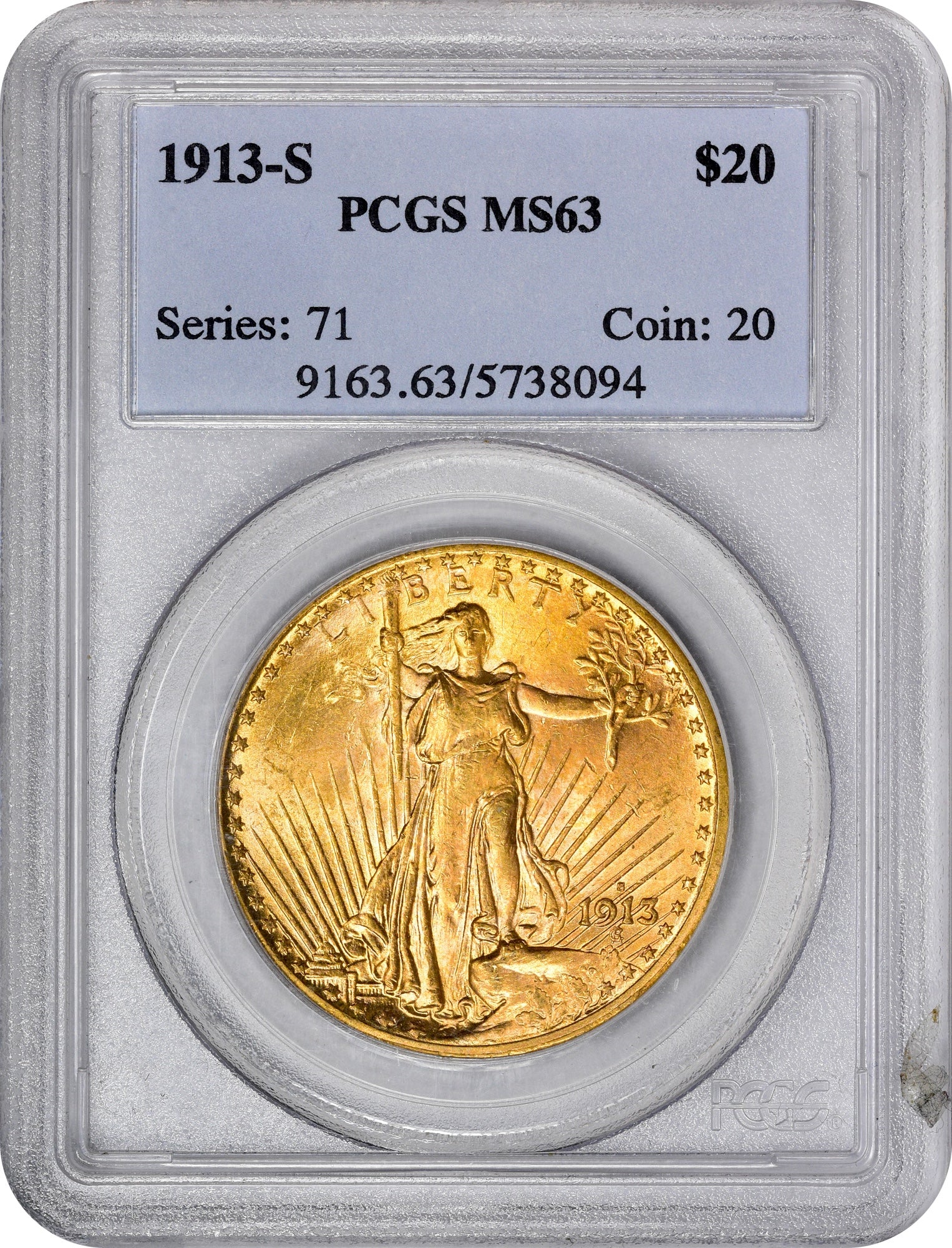 1913-S $20 MS63 PCGS Saint Gaudens Gold Double Eagle