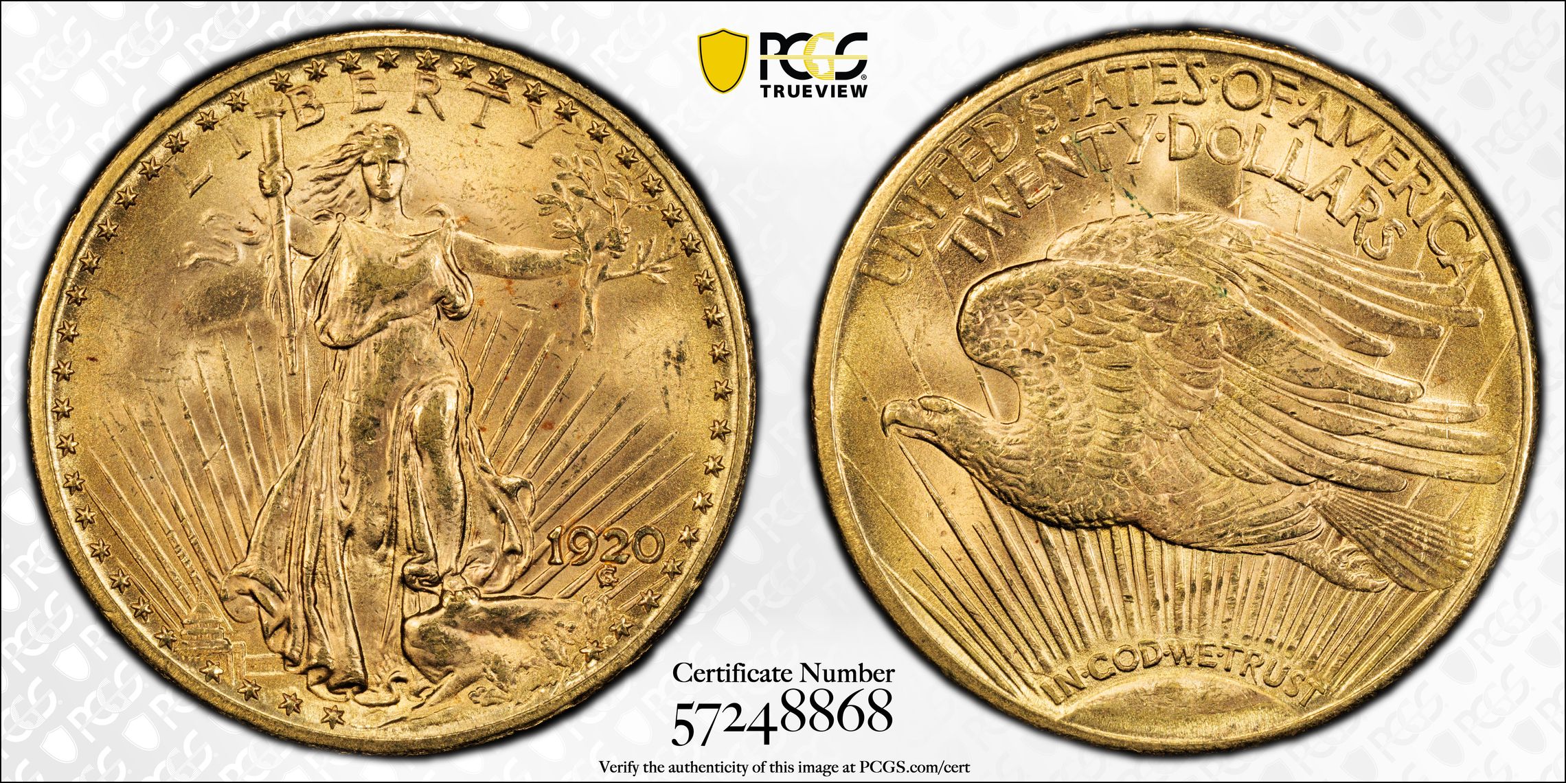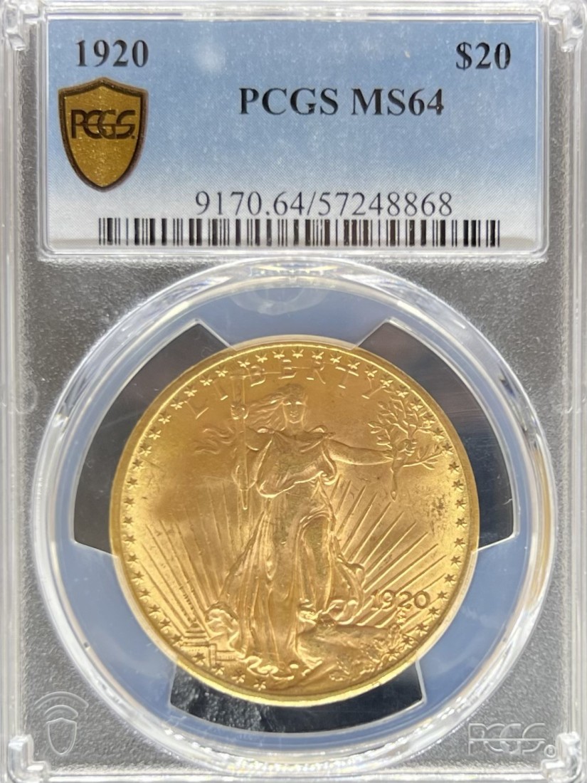 1920 $20 MS64 PCGS Saint Gaudens Gold Double Eagle