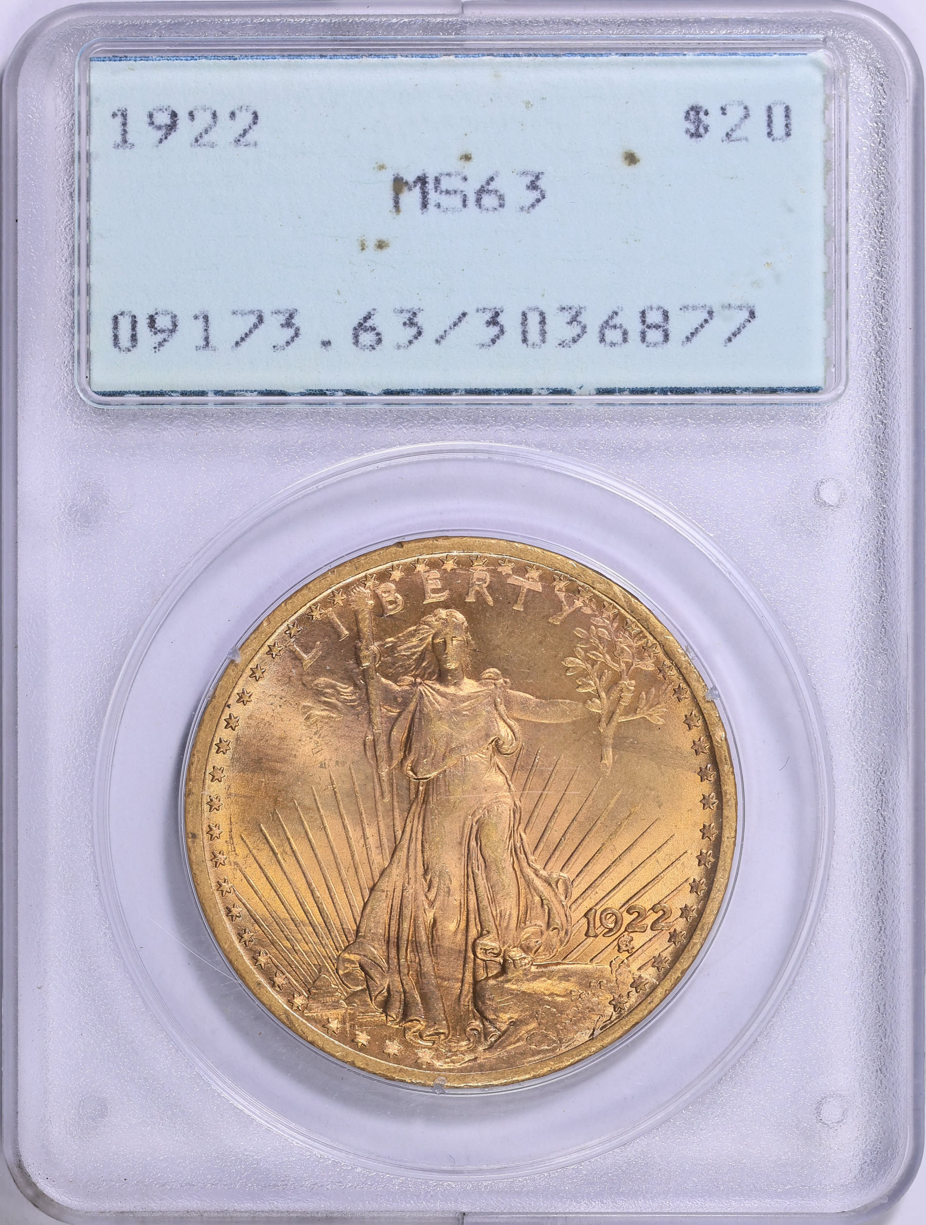 1922 $20 MS63 PCGS Saint Gaudens Gold Double Eagle Rattler!