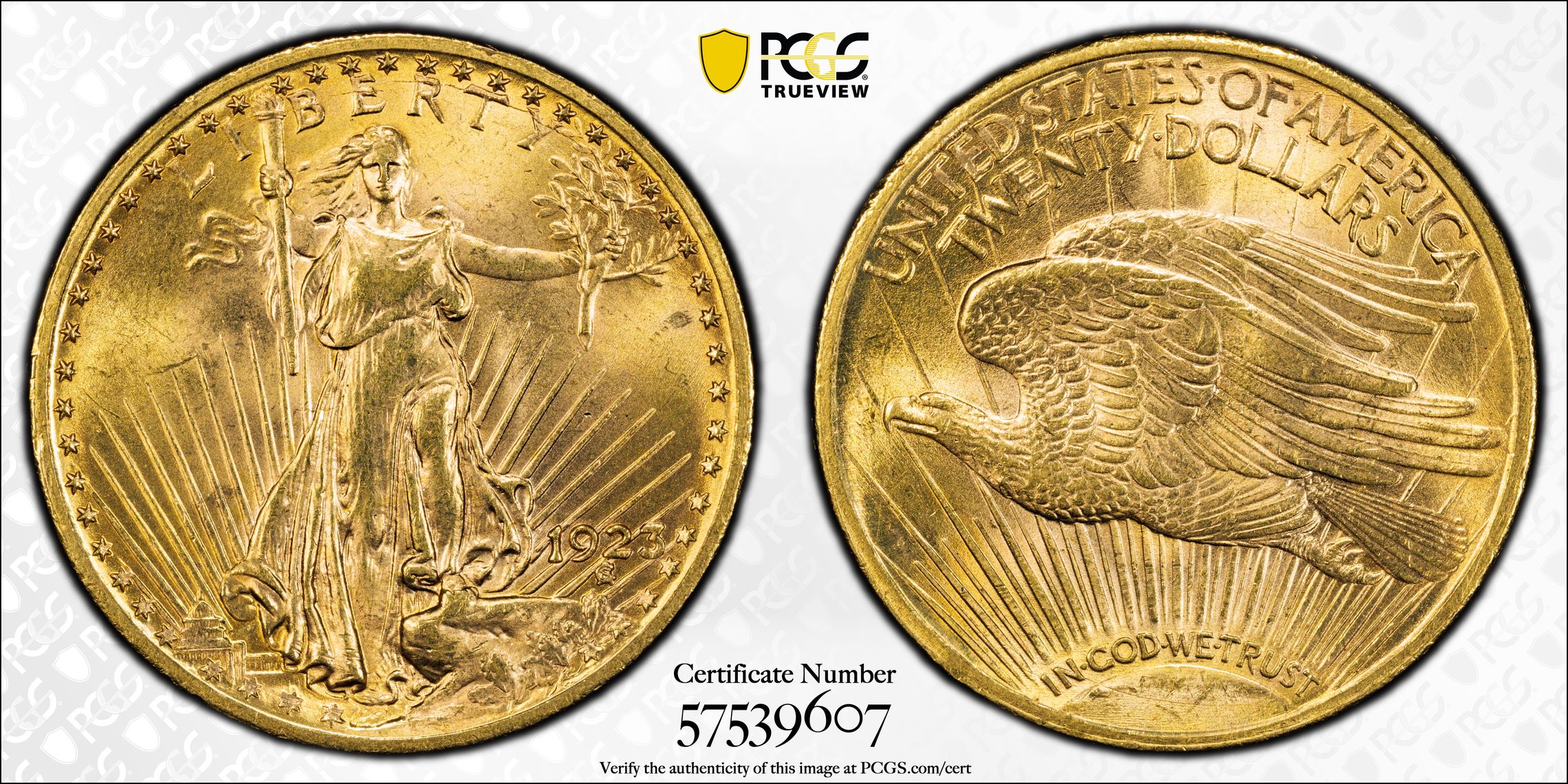 1923 $20 MS65 PCGS Saint Gaudens Gold Double Eagle
