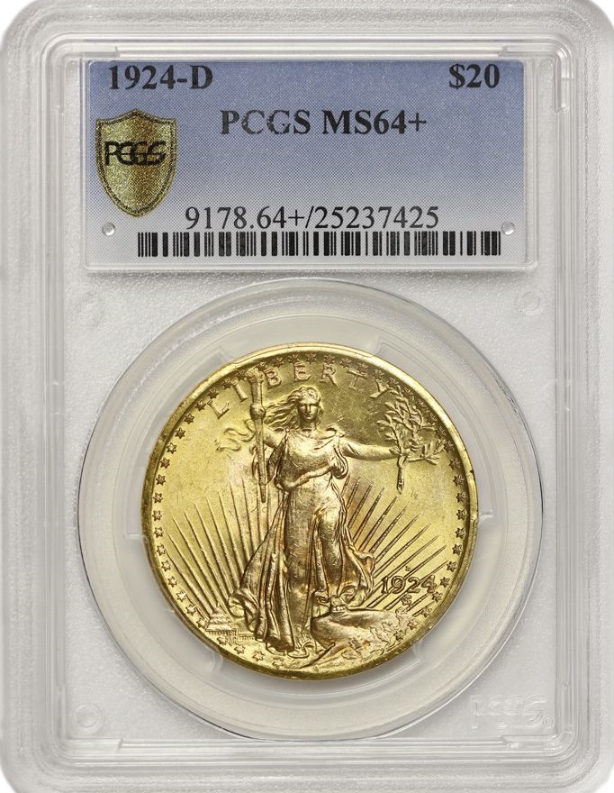 1924-D $20 MS64+ PCGS Saint Gaudens Double Eagle
