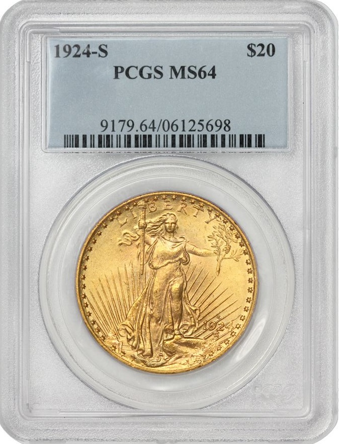 1924-S $20 MS64 PCGS Saint Gaudens Double Eagle
