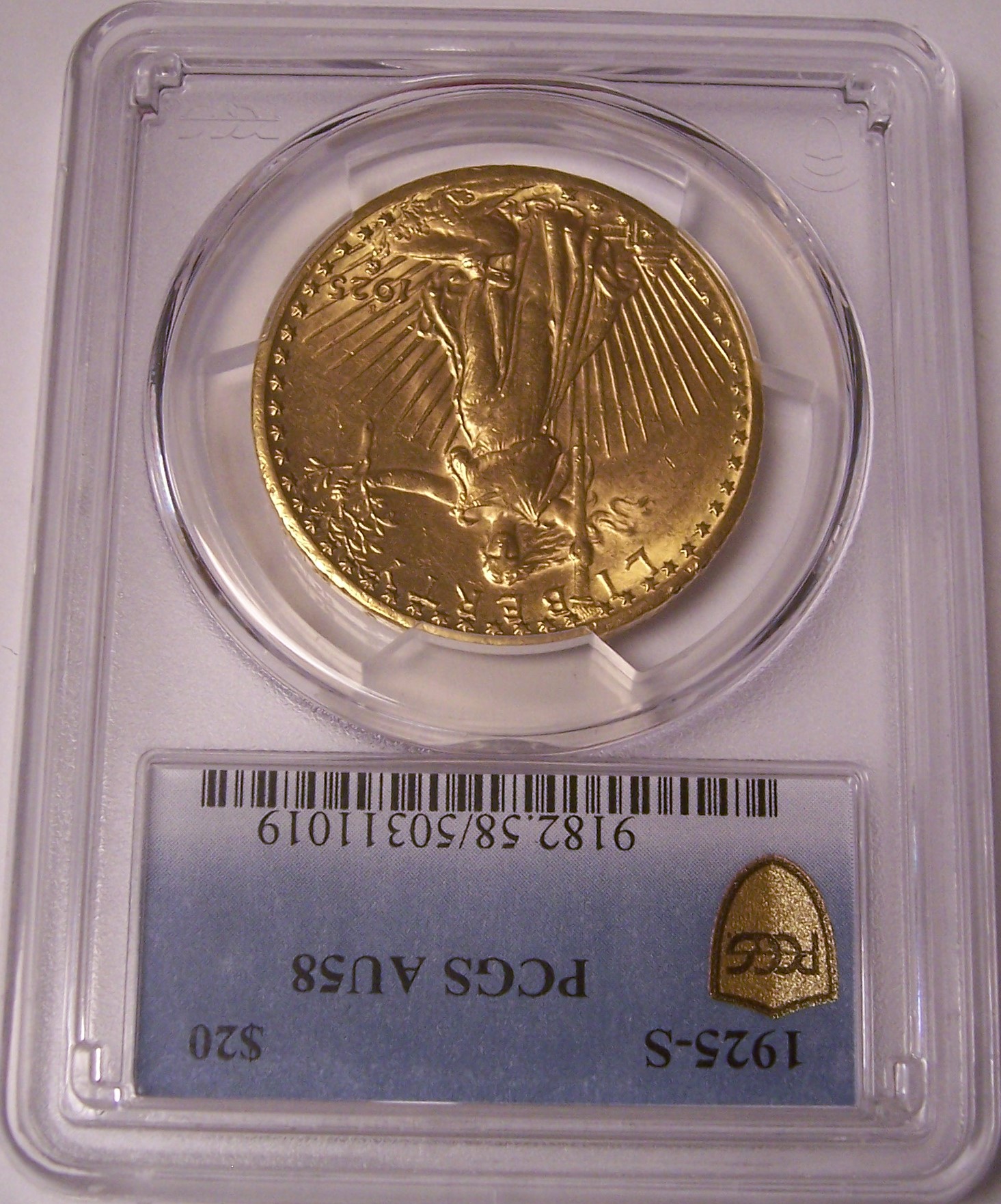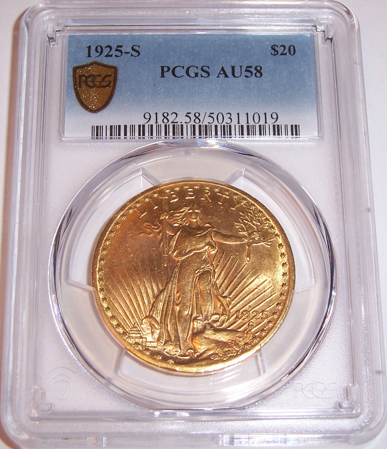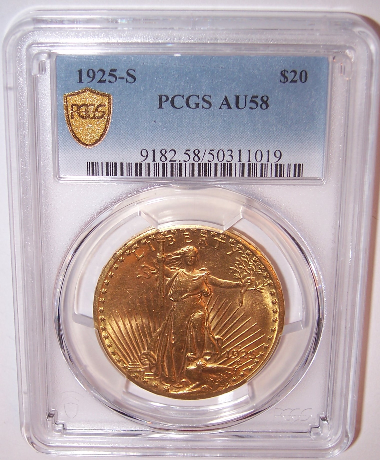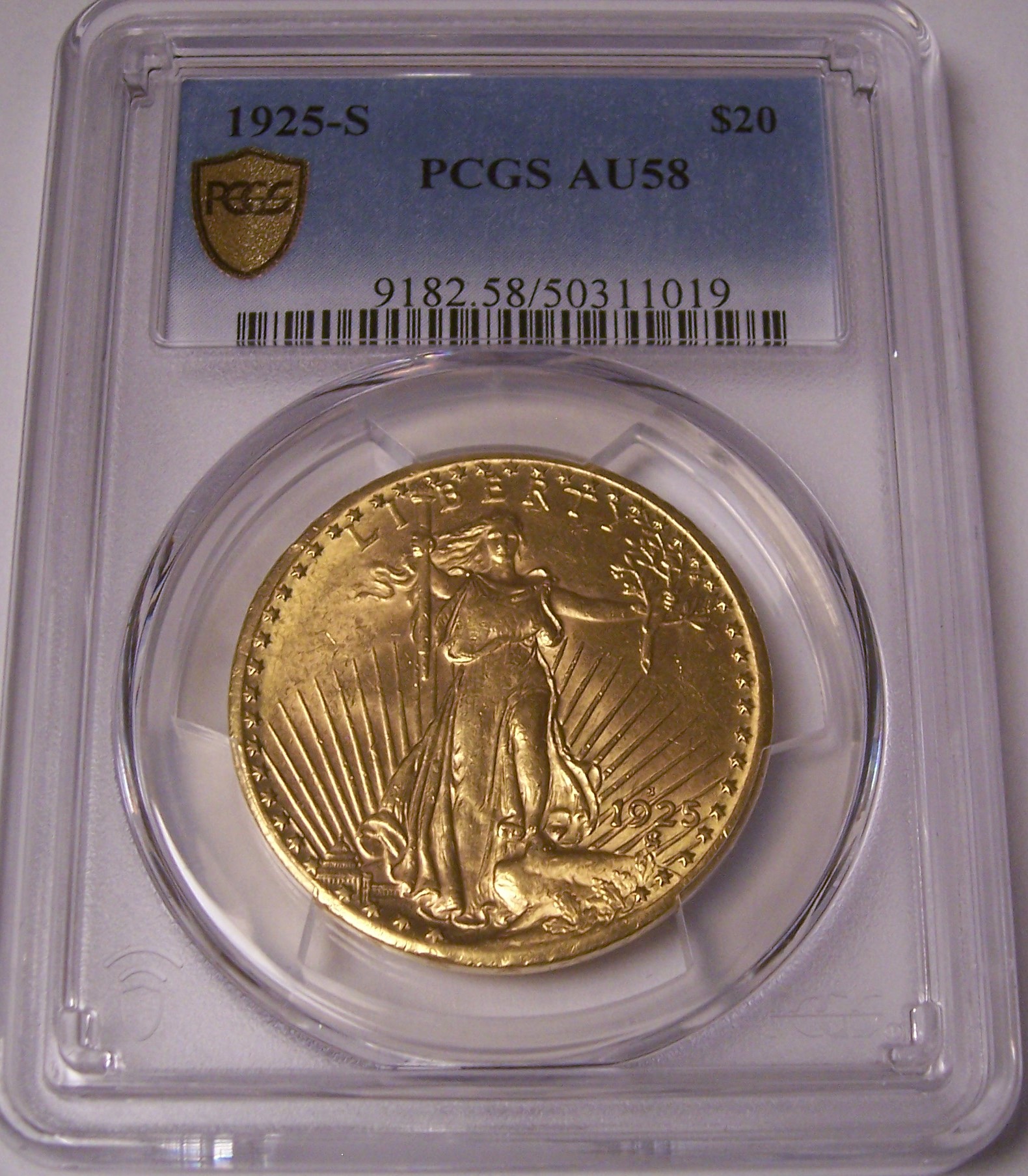 1925-S $20 AU58 PCGS Saint Gaudens Double Eagle.