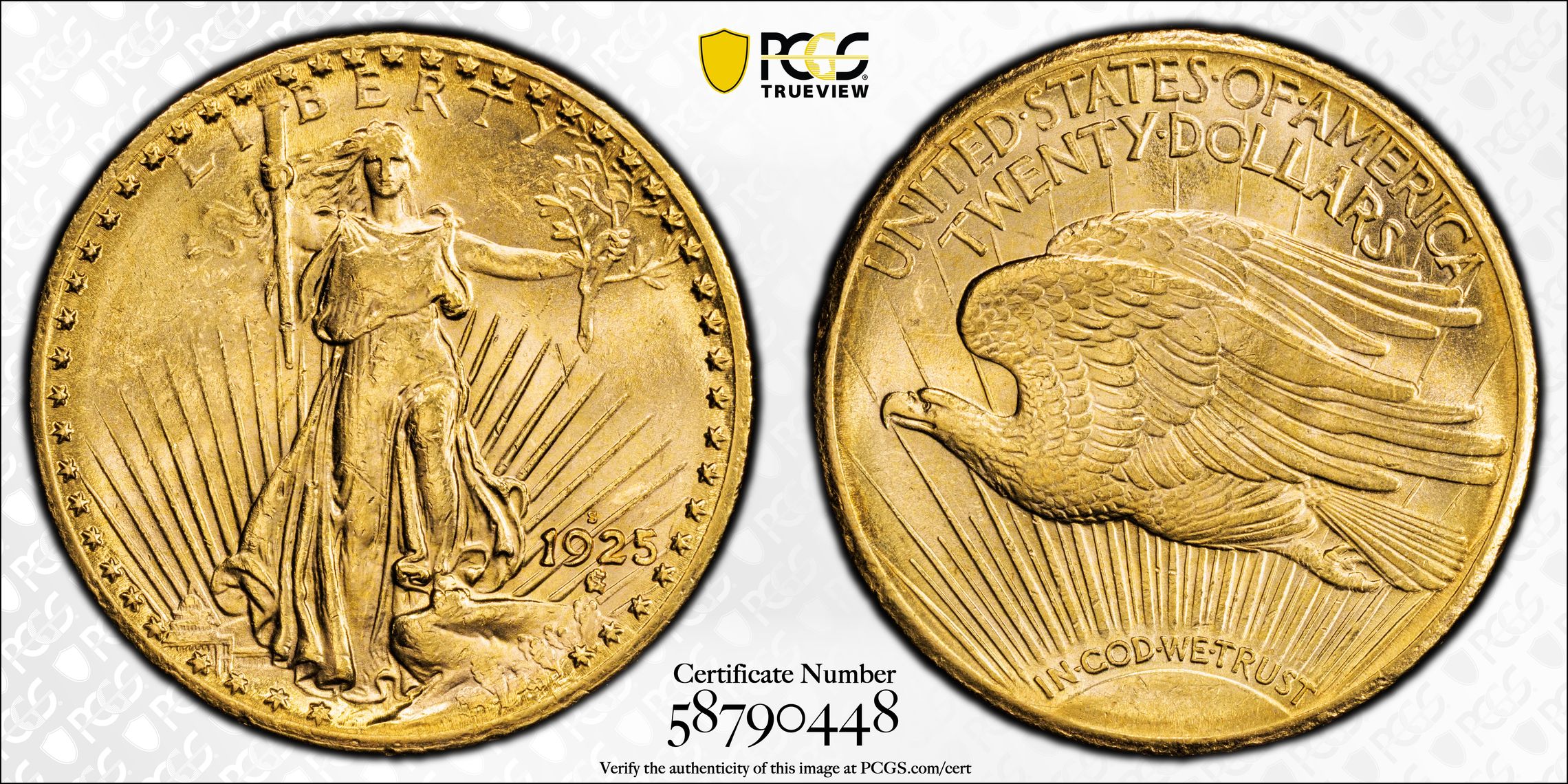 1925-S $20 MS62 PCGS Saint Gaudens Double Eagle.